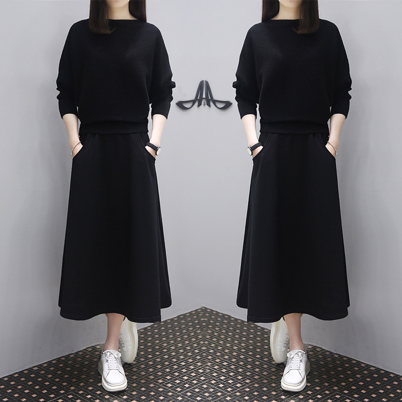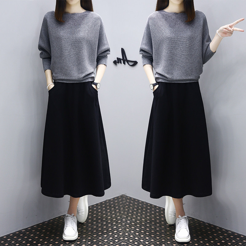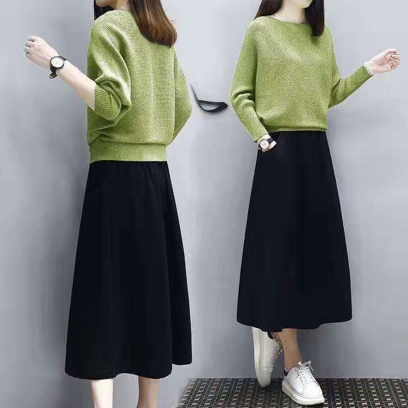气质宽松大码 秋装 连衣裙休闲套装 女长袖 针织两件套裙子 2026年新款
