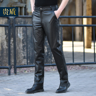 直筒防风防水摩托车机车皮裤 真皮皮裤 修身 冬季 男头层牛皮中年男士
