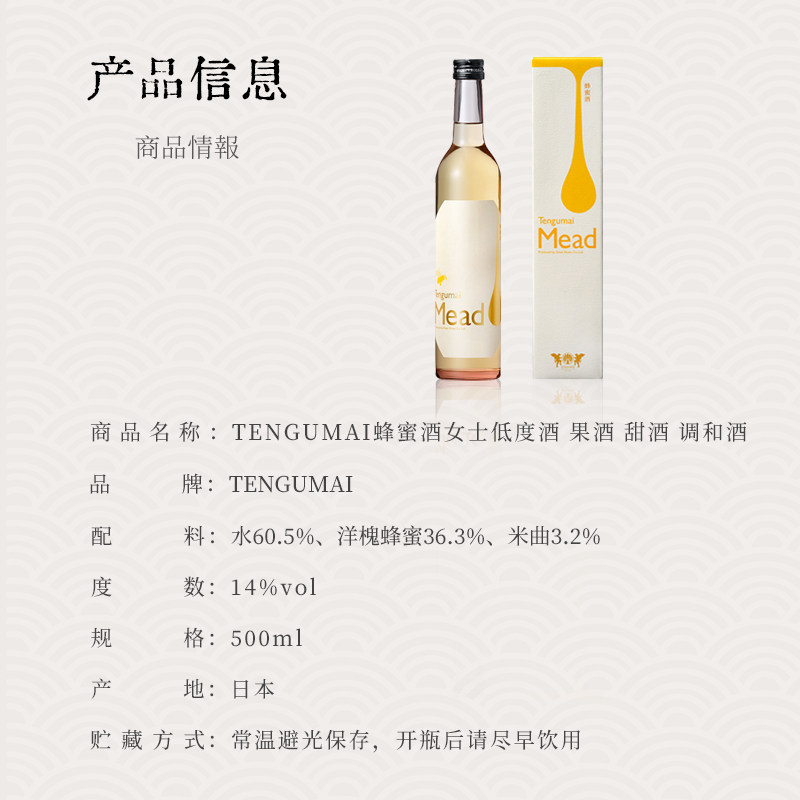 全日空 TENGUMAI蜂蜜酒500ml低度果酒蜂蜜发酵甜酒晚安酒