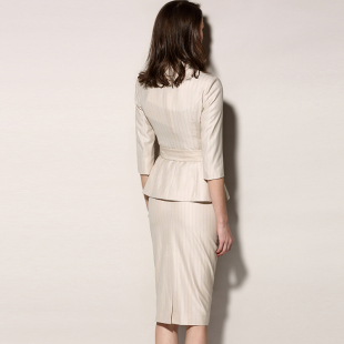 添香秋装 羊毛条纹套装 新款 气质修身 女套裙 OL职业装 颈袖