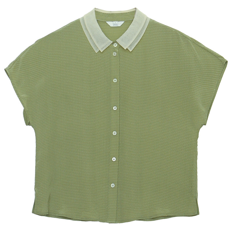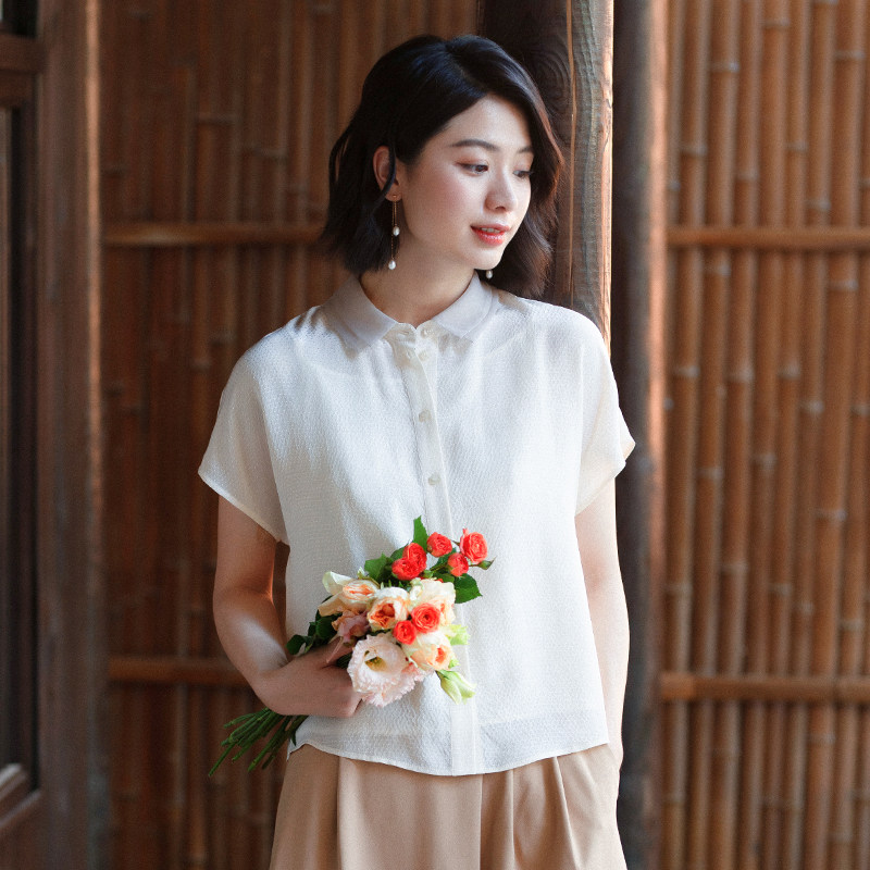 瓷片高端复古文艺双层小翻领桑蚕丝衬衫 碧水蒹葭 049 G21S
