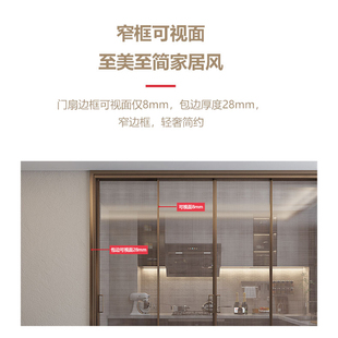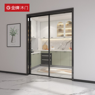 金牌厨房门推拉门玻璃门铝合金门吊轨极窄移门室内隔断阳台门定制