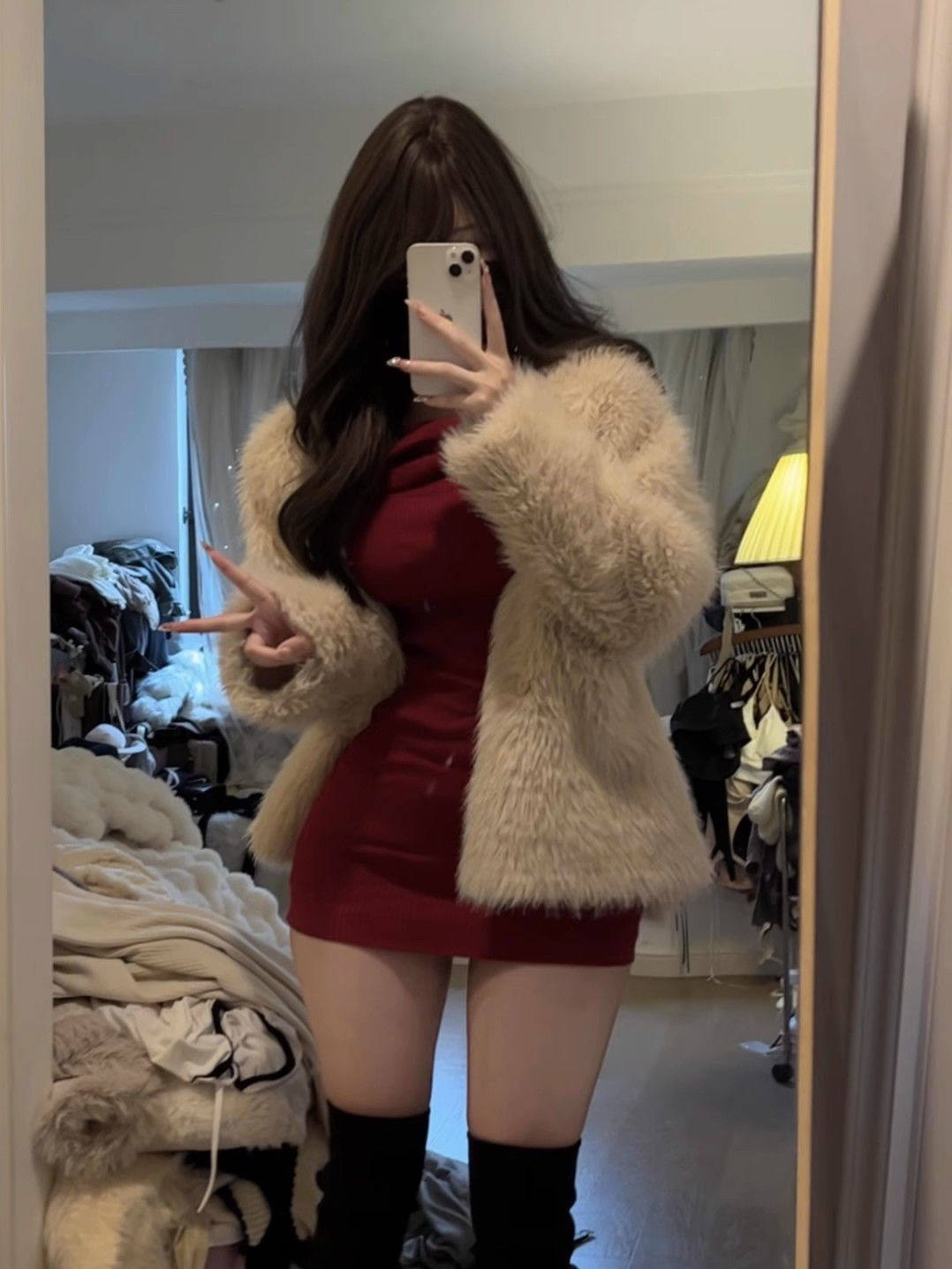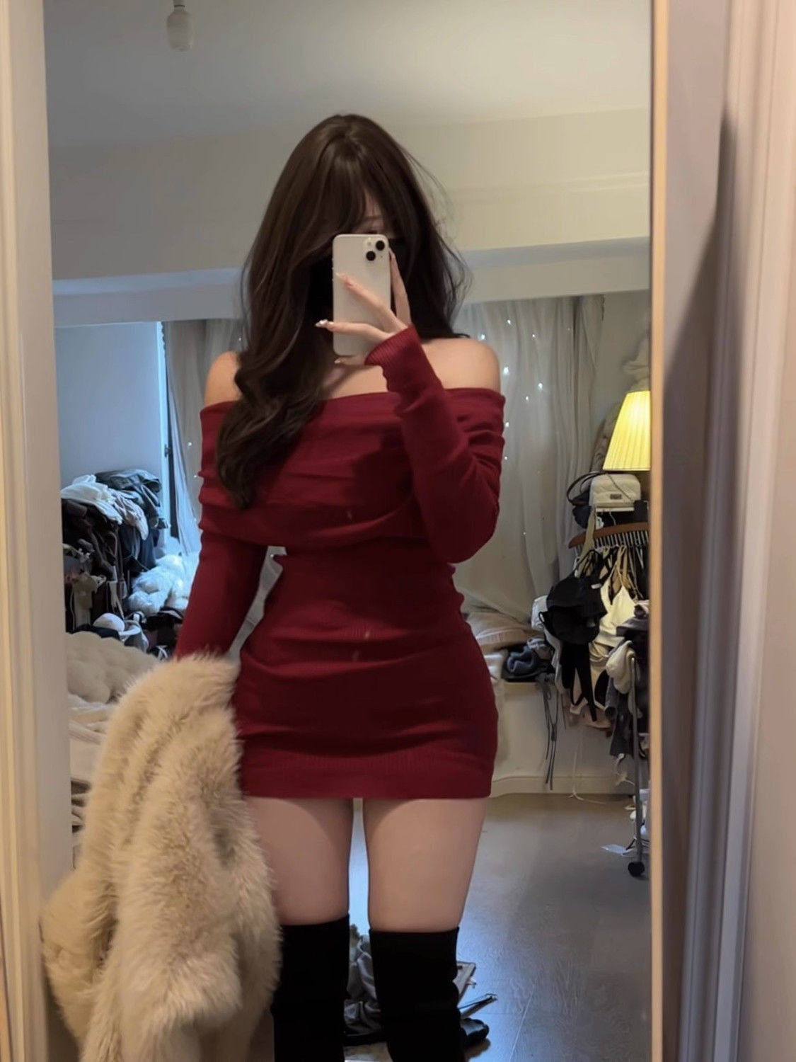 显瘦针织连衣裙配围脖 高级感气质立体花朵大圆领修身 SYT自制 法式