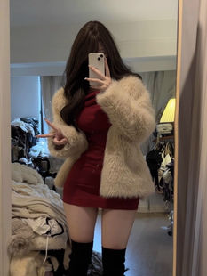 蕾丝拼接吊带连衣裙女秋冬抹胸皮裙辣妹a字裙子 灰尘邓邓 现货