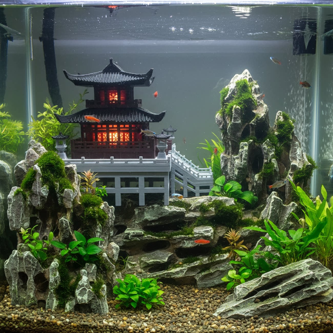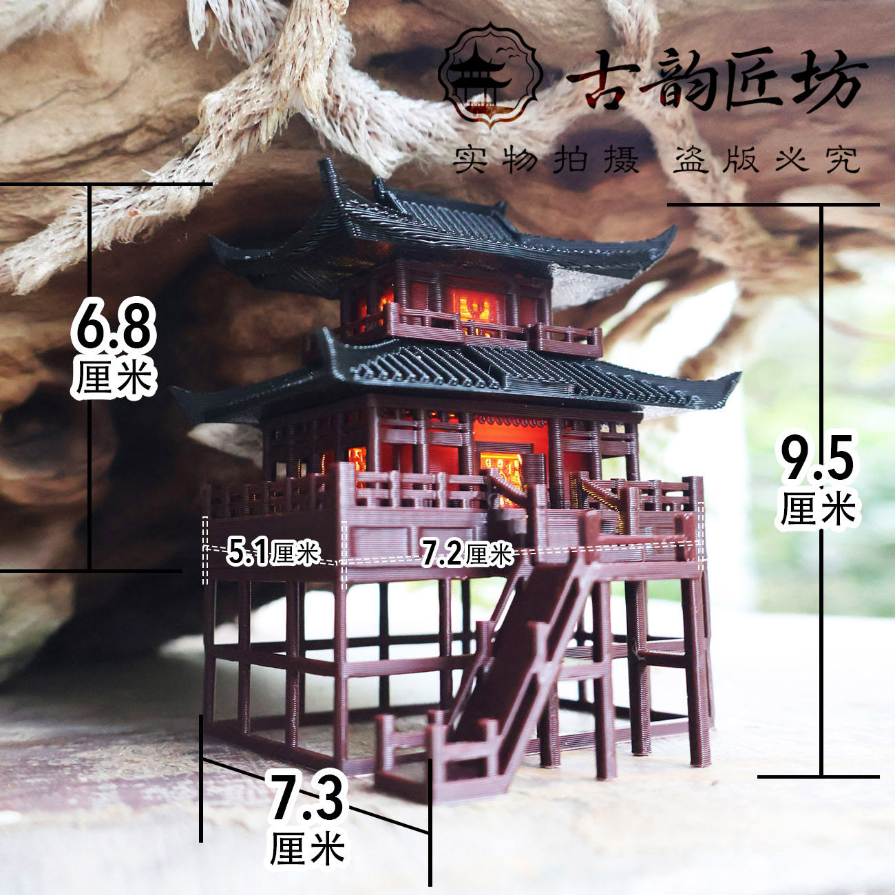 二层古殿摆件盆景假山微景观造景通用中式 饰模型古韵环保 古建筑装