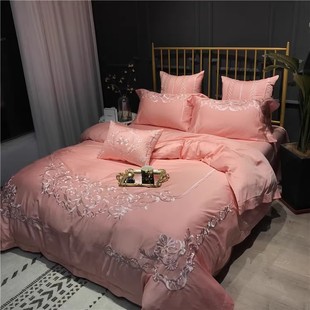 轻奢160支长绒棉四件套欧式 高级感纯棉刺绣裸睡被套全棉床笠床品4