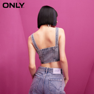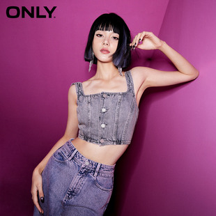 牛仔吊带T恤女潮上衣 显瘦短款 绫致ONLY春夏新时尚 百搭修身