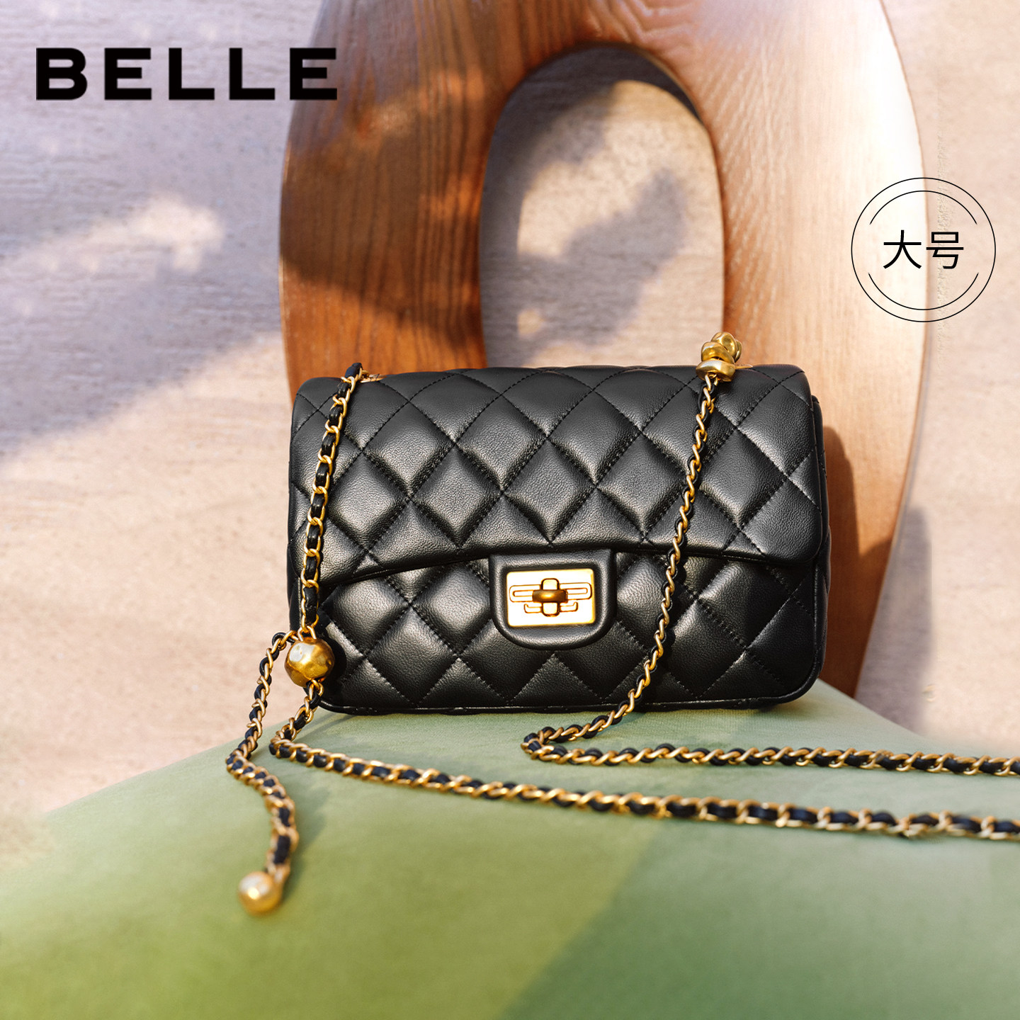 百丽女包新款 碎银几两质感羊皮真皮链条小香风百搭斜挎包X6916BX4