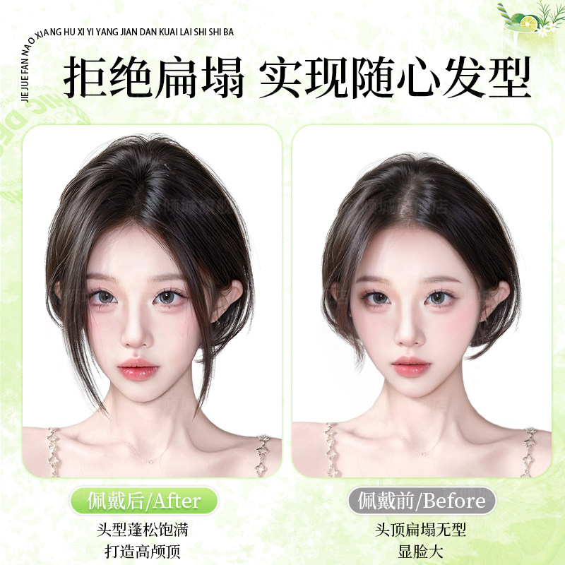 假发女片头顶补发遮白发前额无边八字刘海仿真发蓬松高颅顶假发女