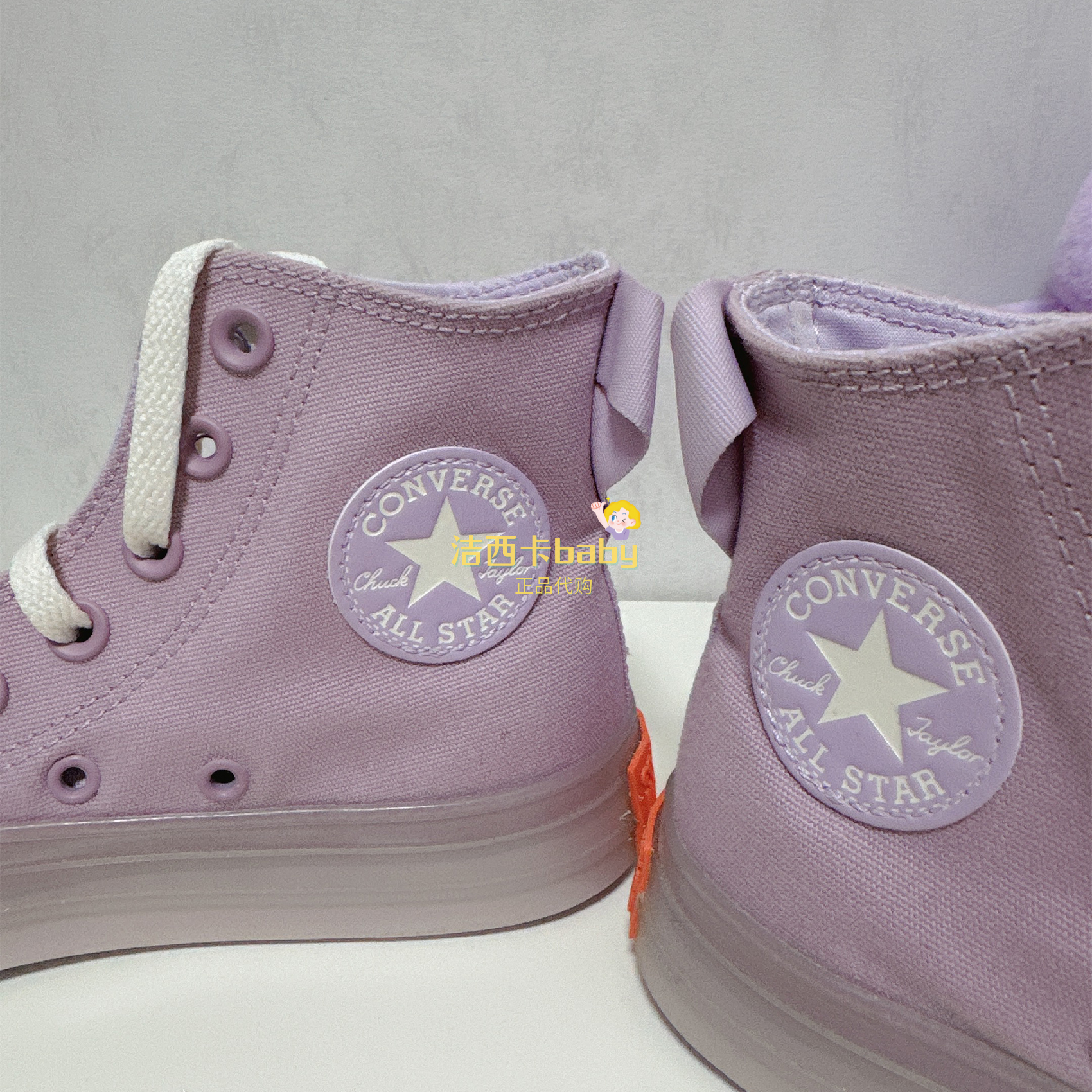 CX水晶果冻底琉璃紫色高帮帆布鞋 破盒发黄特价 172893C 匡威 正品