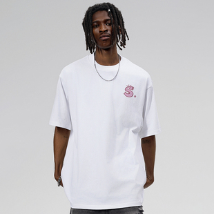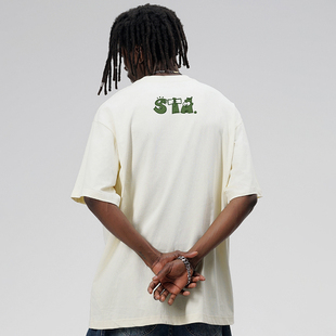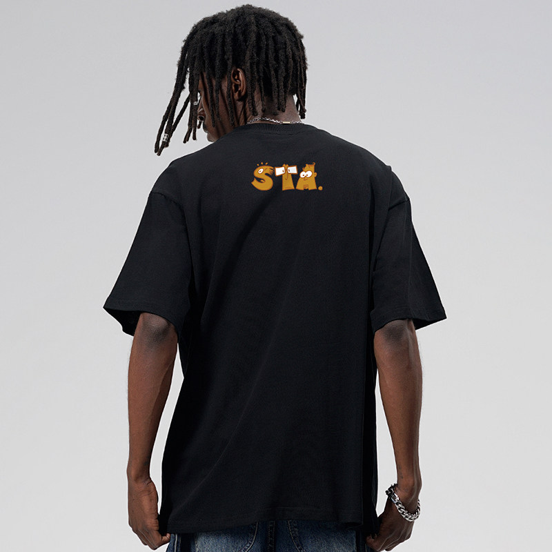 宽松情侣重磅半袖 夏季 体恤 t恤男女款 STA潮牌迷你卡通字体纯棉短袖
