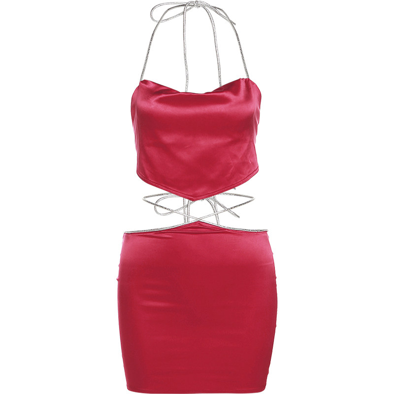 KLIOU 女 欧美风性感不规则挂脖露背背心紧身包臀短裙辣妹两件套