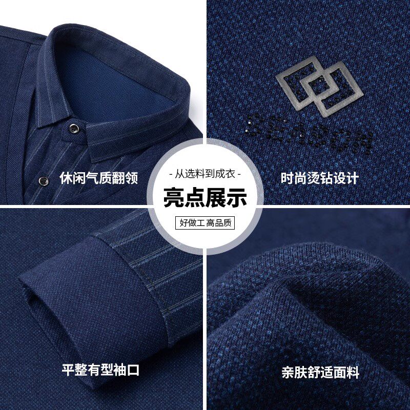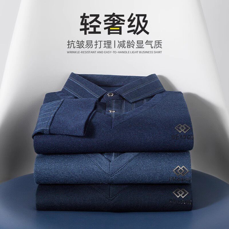 条纹上衣中老年人POLO衫 爸爸春装 中年男士 t恤2026新款 假两件长袖