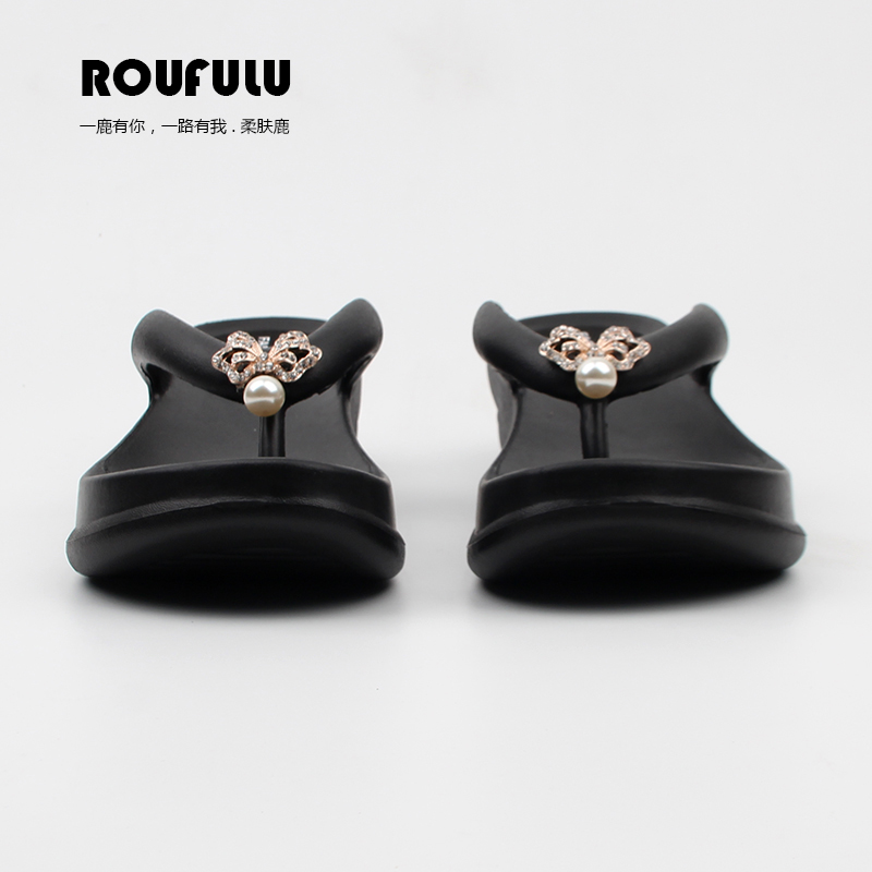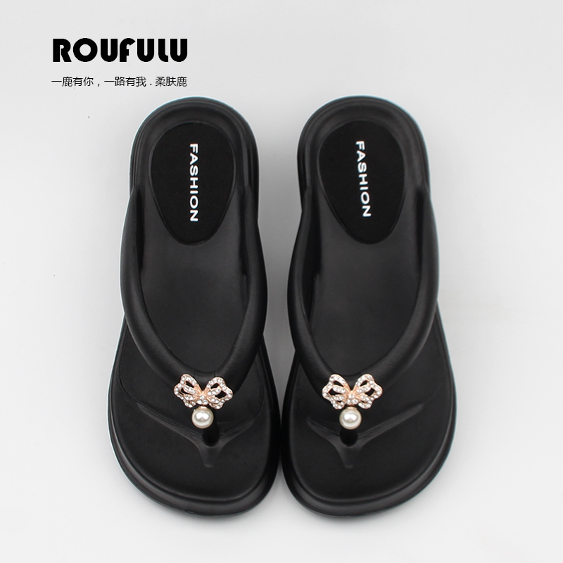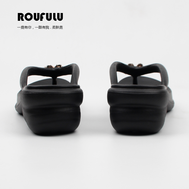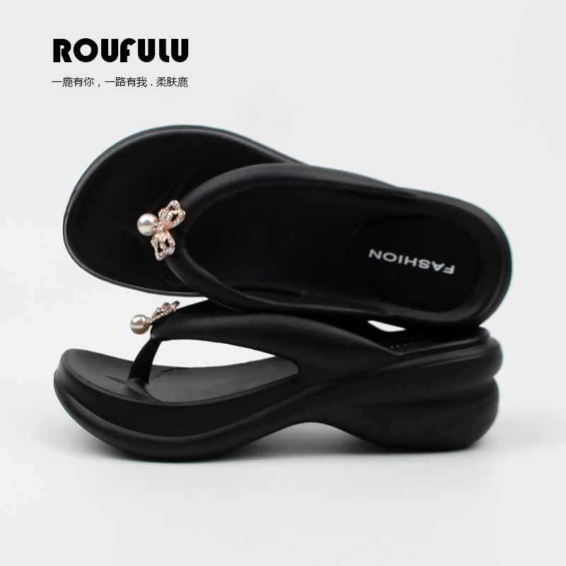 外穿厚底松糕跟潮流夹脚简约中跟人字拖 2023新款 柔肤鹿拖鞋 女夏季
