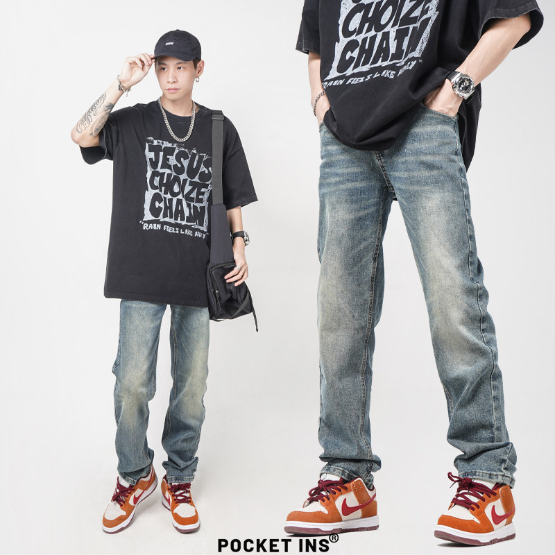 休闲裤 男款 复古cleanfit直筒宽松牛仔裤 子女秋冬 POCKET高街美式