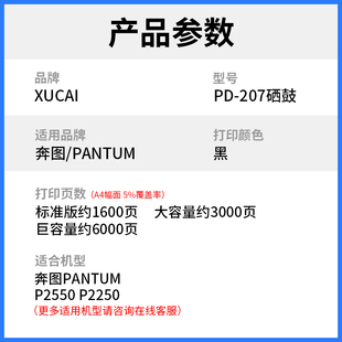 P2250黑白激光打印机墨粉盒奔图易加粉碳粉盒pantum 医疗机专用 适用奔图P2550硒鼓 奔图PD207硒鼓
