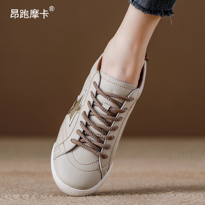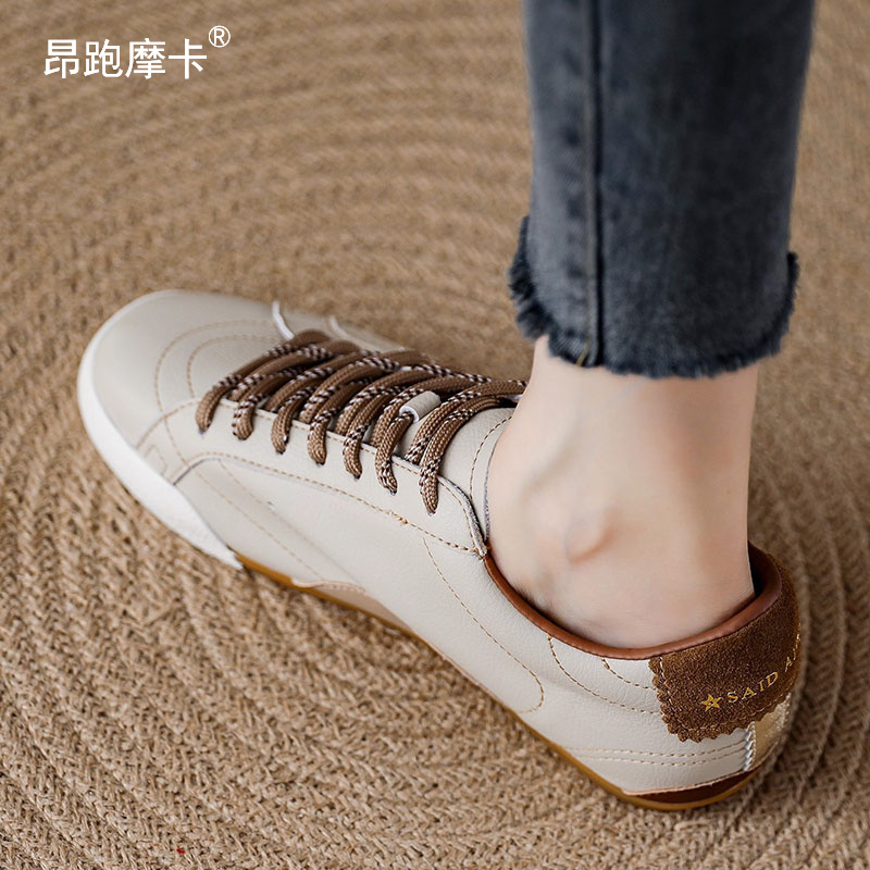 真皮运动板鞋 百丽焦糖美式 轻便休闲小白鞋 新款 加绒A1468BM4 秋冬季