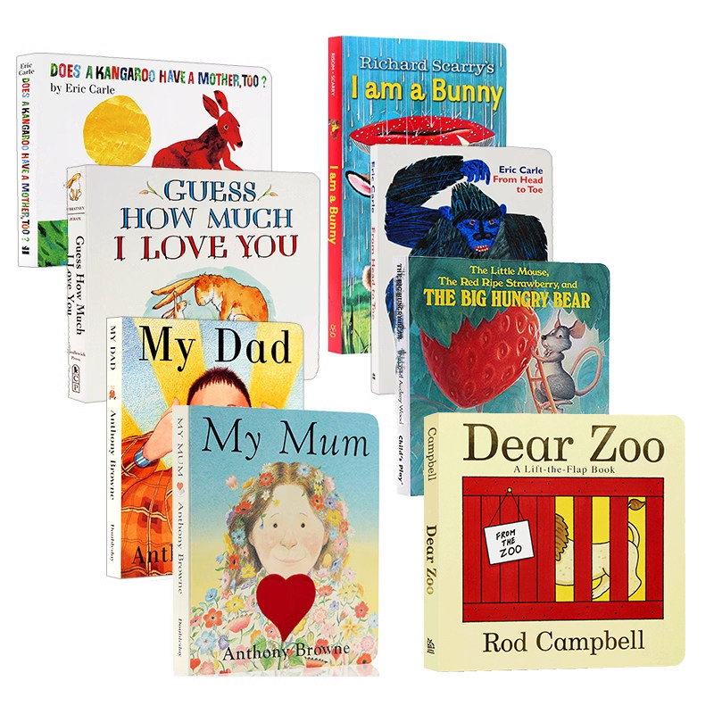 我妈妈 袋鼠也有妈妈 亲爱 从头到脚 小老鼠红草莓 猜猜我有多爱你 我爸爸 我是一只兔子 动物园 英文绘本原版 英语启蒙早教书8册
