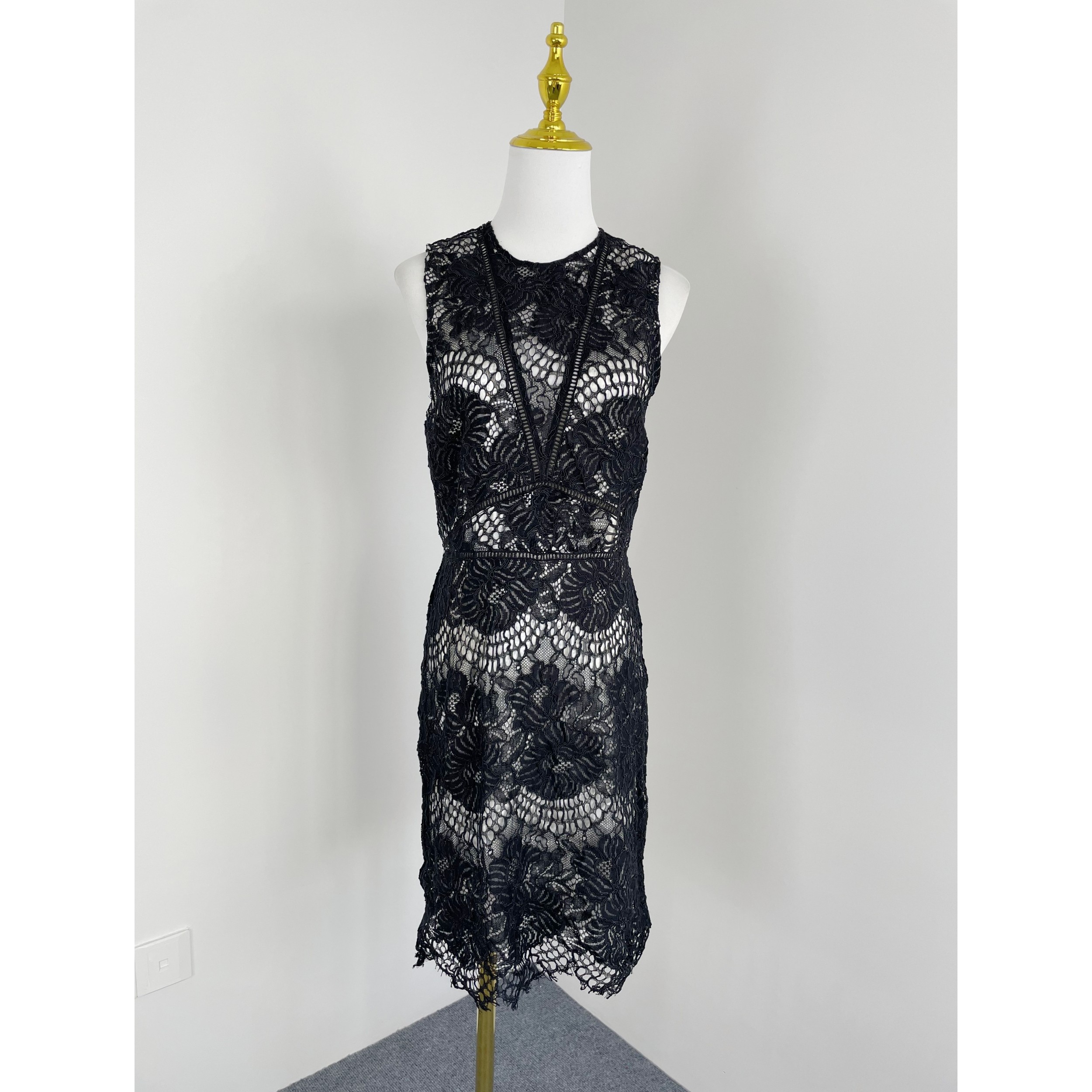 新款 女裙2025夏季 轻熟时髦连衣裙 骨线蕾丝镂空无袖 J2058瑕疵款