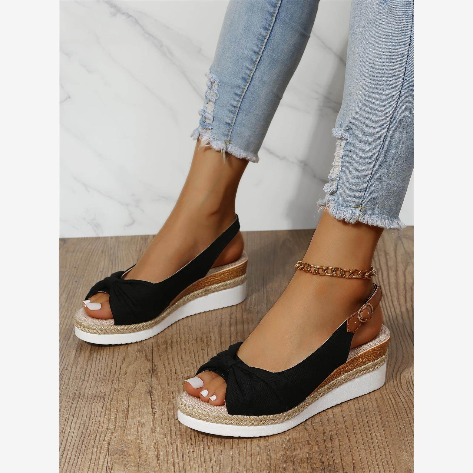 roman 女鞋 shoes women sandals 麻绳蝴蝶结坡跟大码 wedge 43凉鞋