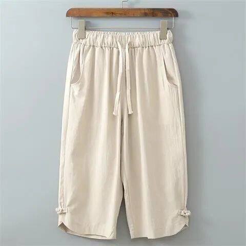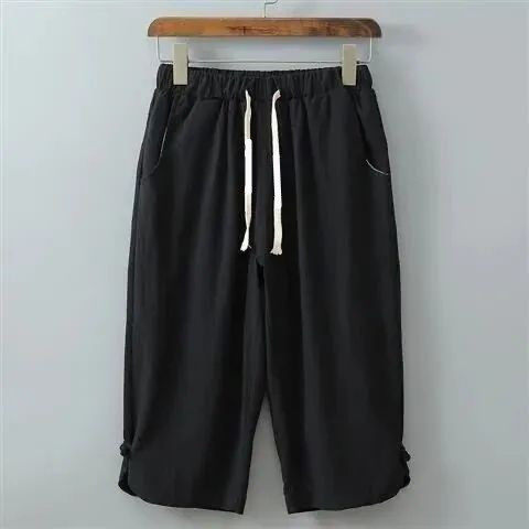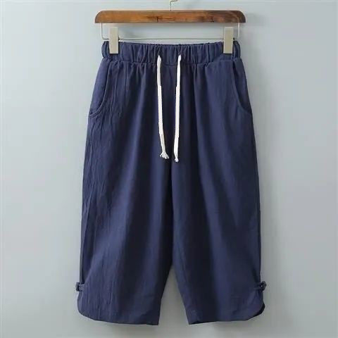 休闲短裤 国风夏季 女高腰显瘦宽松直筒冰丝薄款 显瘦弯刀七分裤 新款