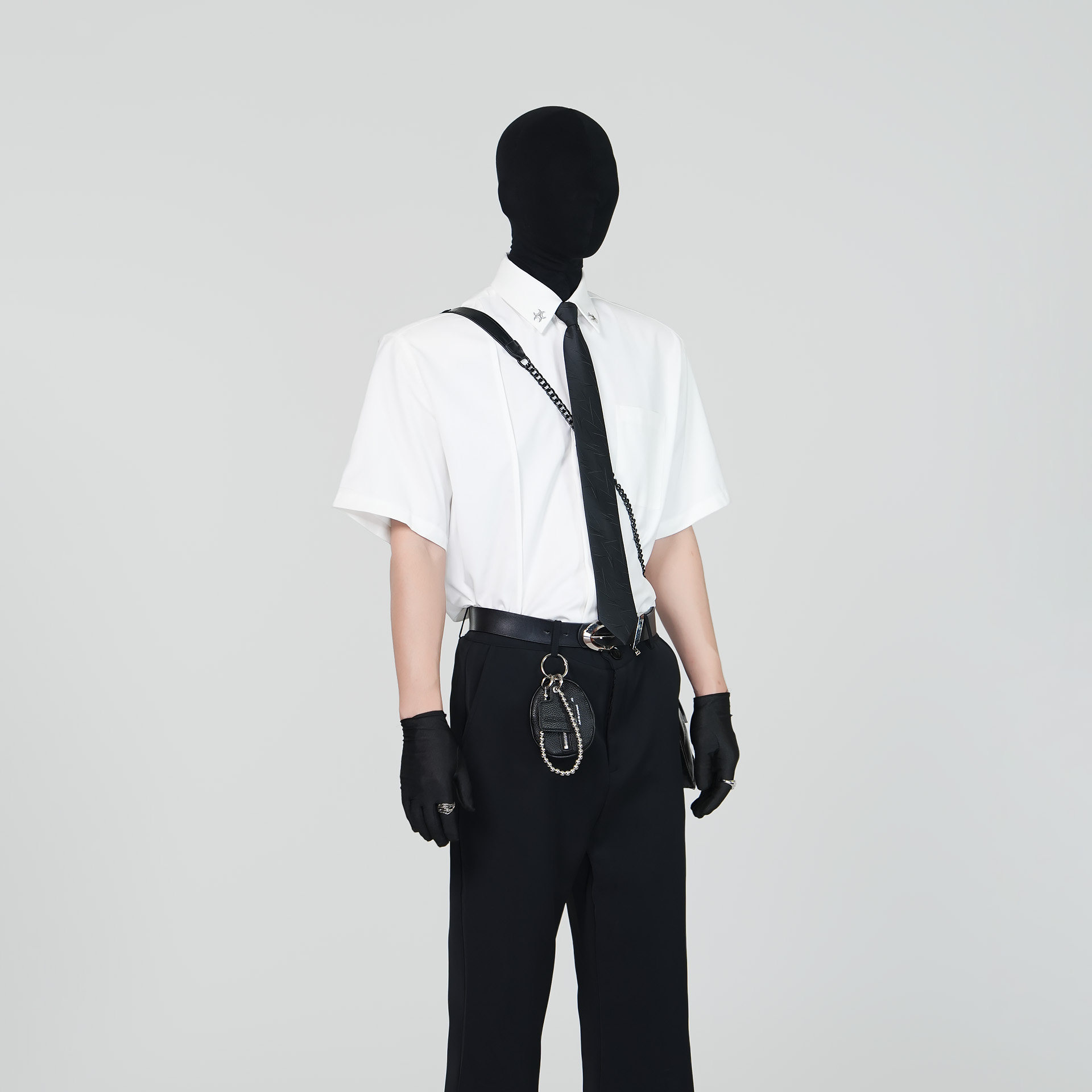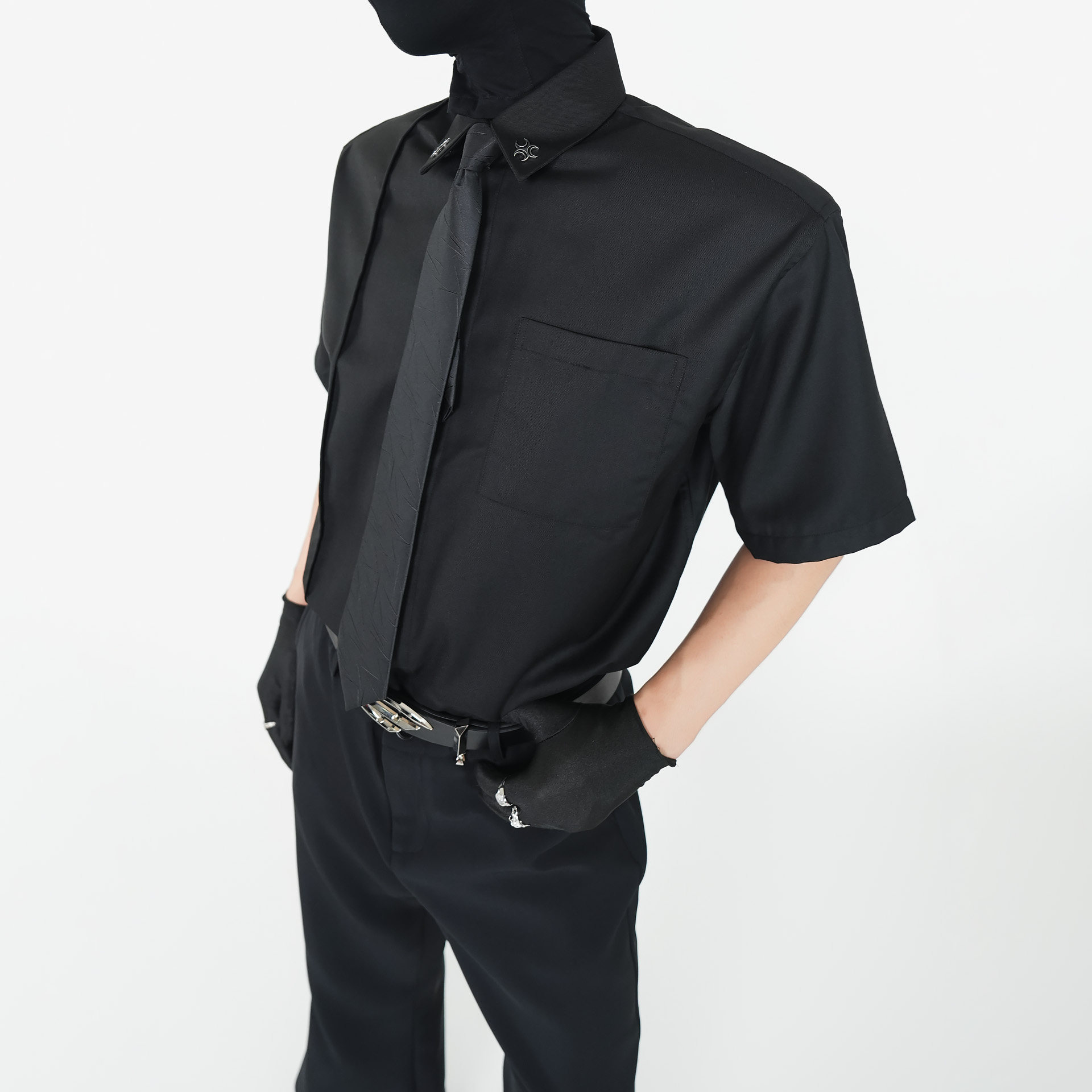 男廓形正肩免打结衬衣领带 衬衫 VE2 cleanfit重磅免烫弯月领针短袖