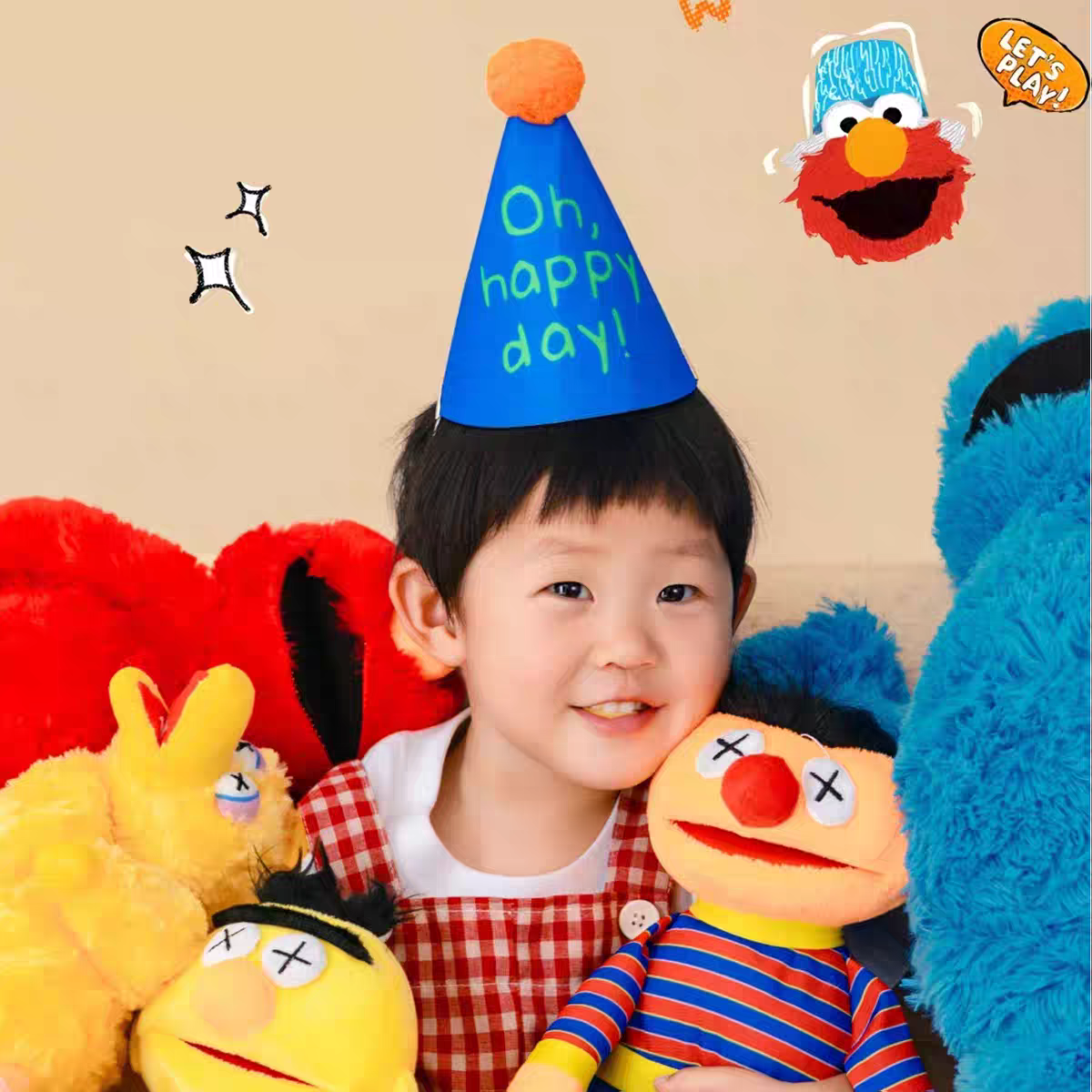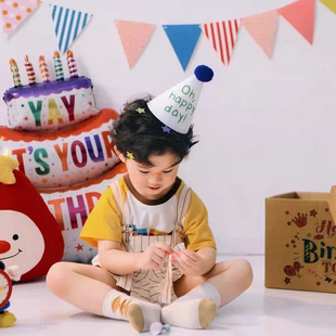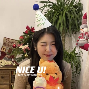 派对生日周岁不织布毛球帽子 day 韩国ins风多巴胺撞色oh happy