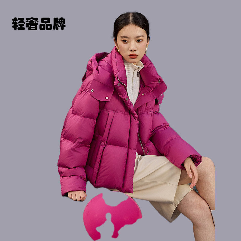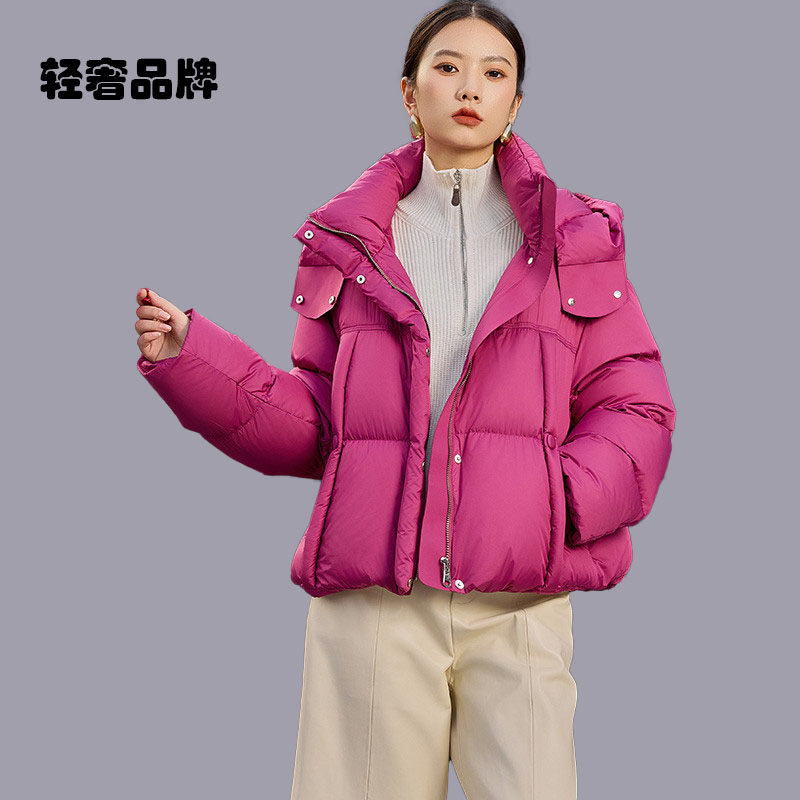 新款 2026年冬季 加厚时尚 朗姿约定大白鹅绒高端玫红羽绒服女短款