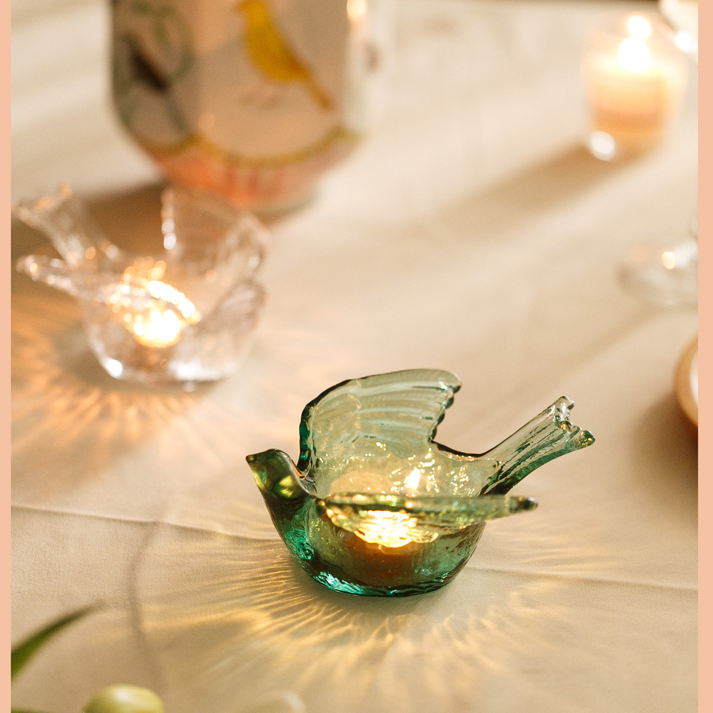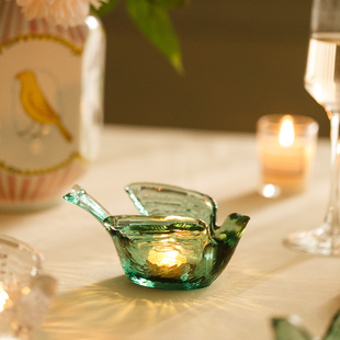 餐厅烛光晚餐中古ins风 复古蜡烛蜡烛台 小鸟透明玻璃烛台 氛围感