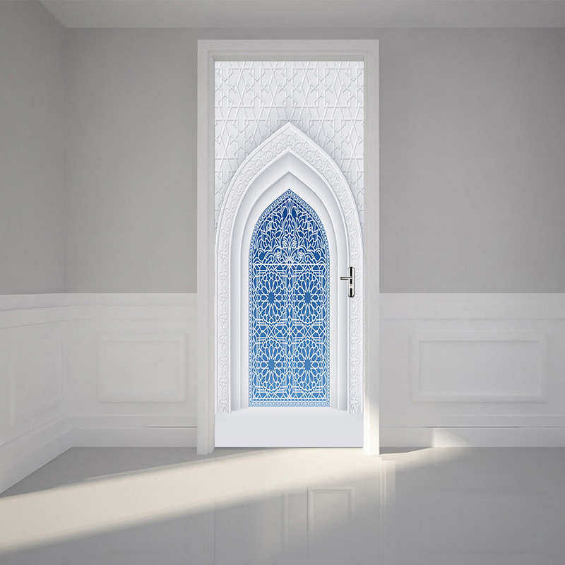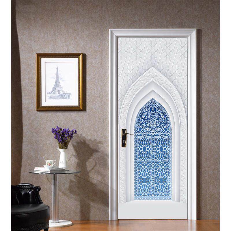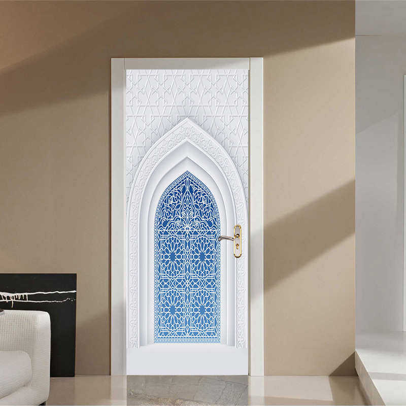 饰 卧室客厅现代装 白墙蓝门 墙贴 巨创货源PVC贴纸3D自粘门贴