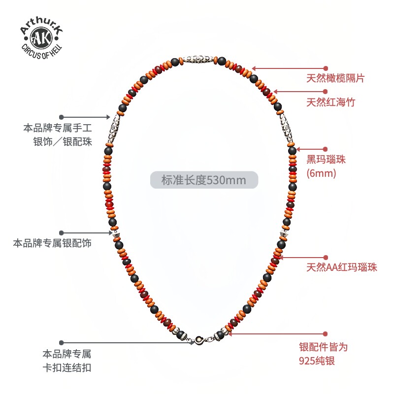 Arthur.k男女款 红海竹天然红玛瑙925银原创设计文玩小众项链手串