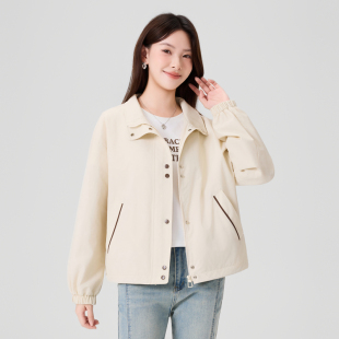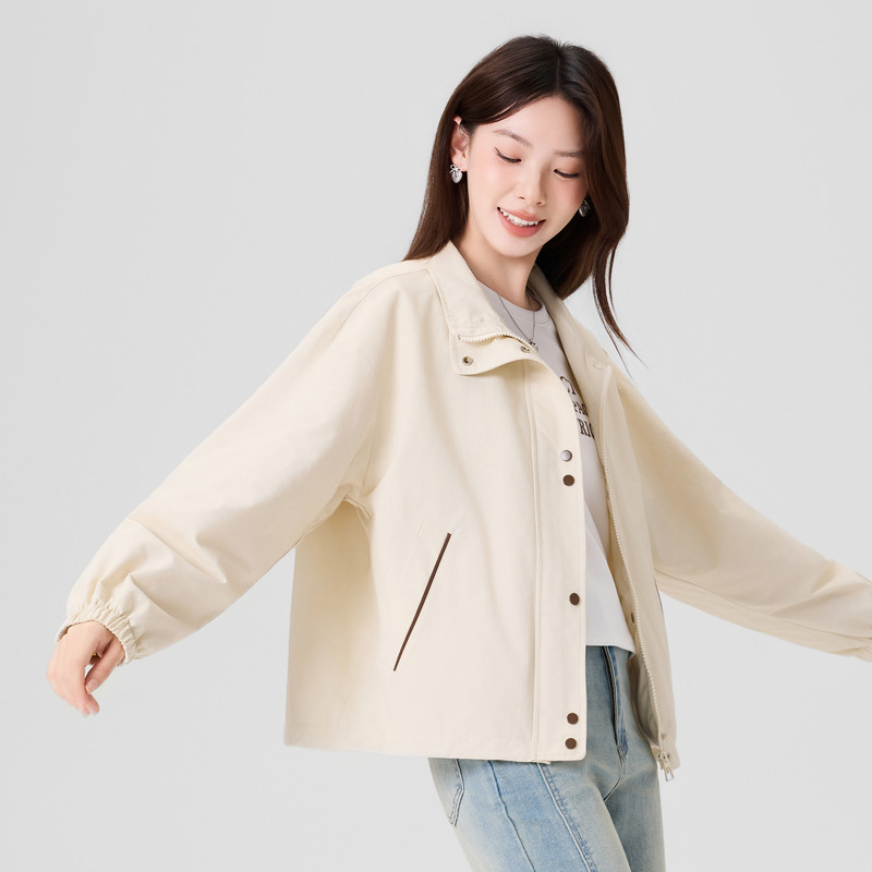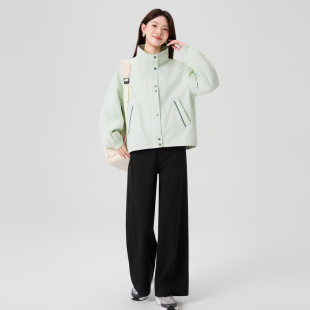 快鱼夹克女士2026年春季 百搭简约宽松立领廓形户外休闲外套女 时尚