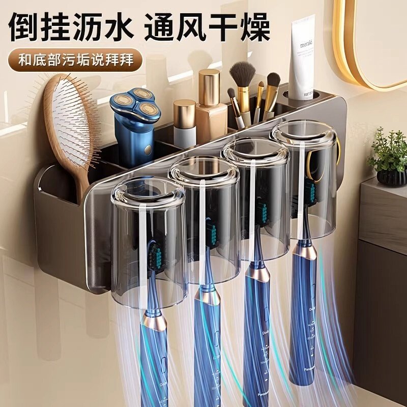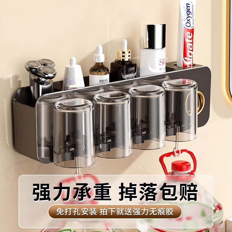 牙刷置物架壁挂式 免打孔卫生间漱口杯刷牙杯家庭电动牙膏牙刷架子