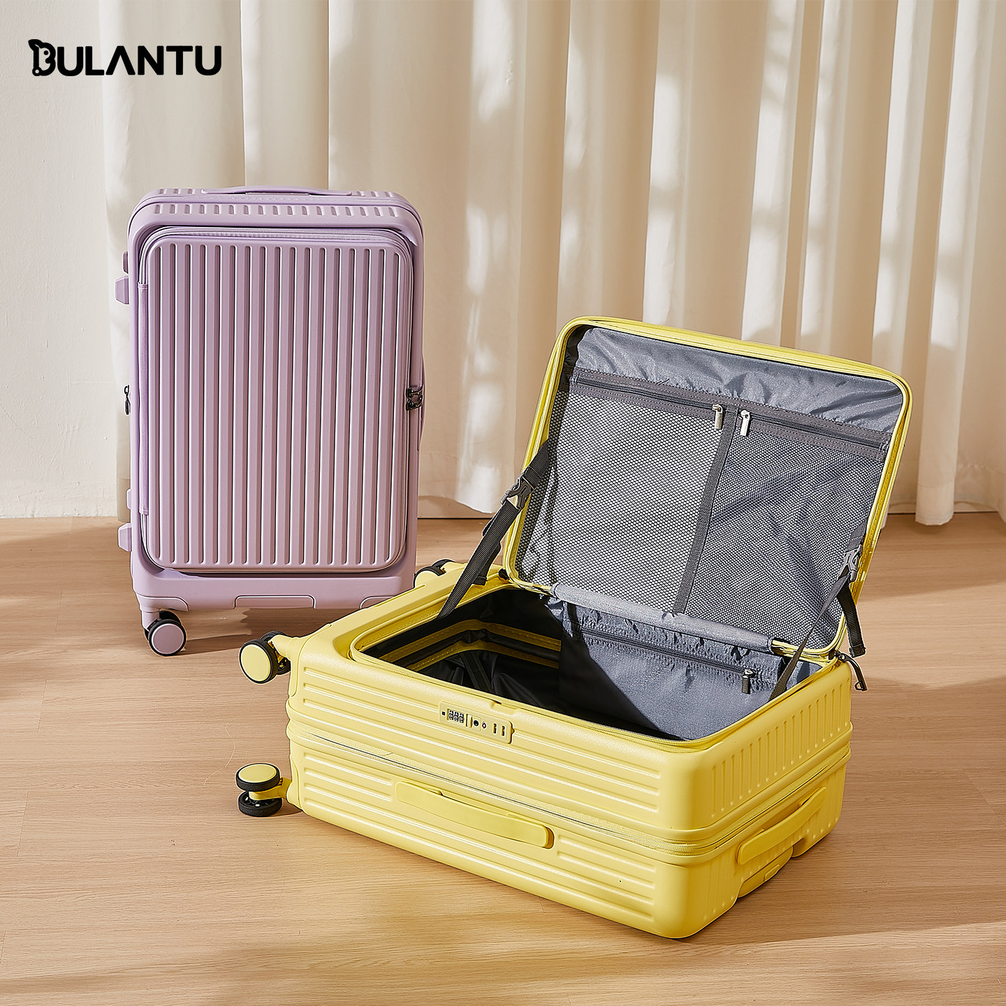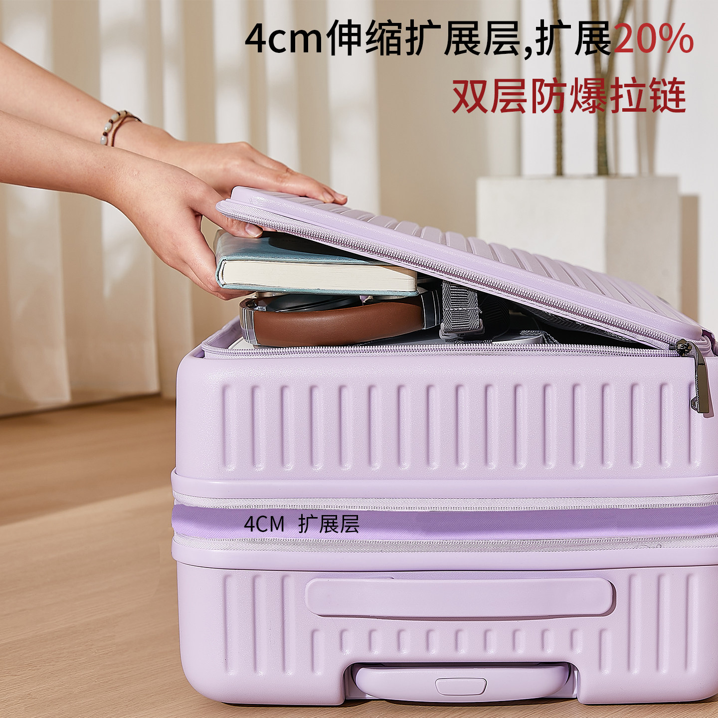 卡拉羊大深舱前开门侧开盖芝士扩容行李箱20寸登机纯PC轻便旅行箱