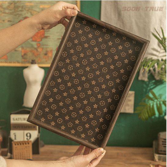 皮革托盘长方形轻奢现代高级感首饰收纳盘花盒底托盘家用茶台茶盘