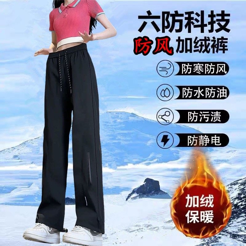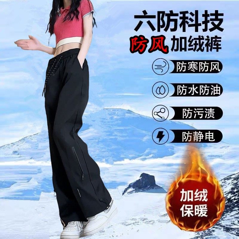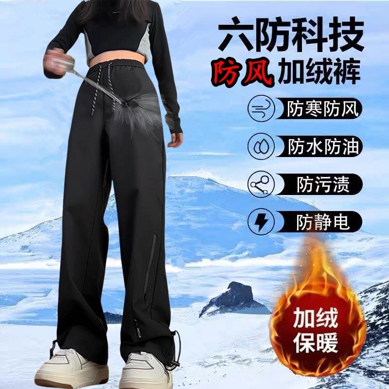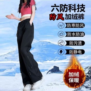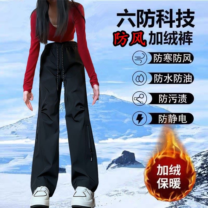 工装 子直筒宽松户外徒步登山裤 防水冲锋裤 加绒加厚长裤 女冬季 美式