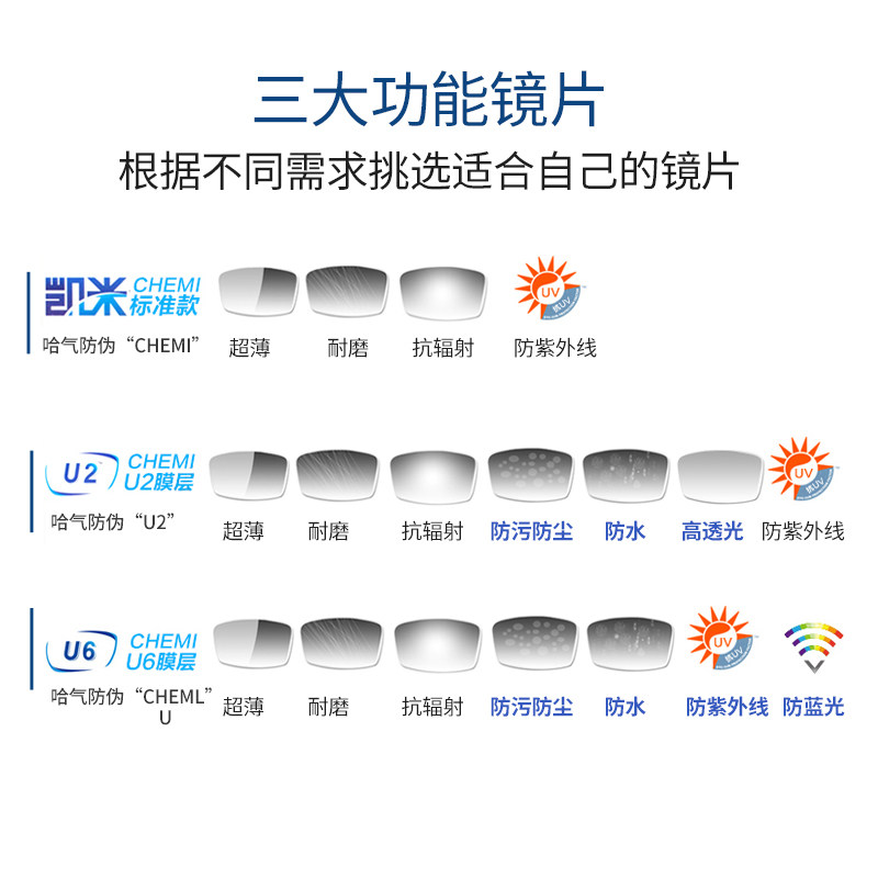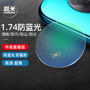 韩国凯米镜片1.74超薄U6X清底色防蓝光金罡U2高度定制近视眼镜片