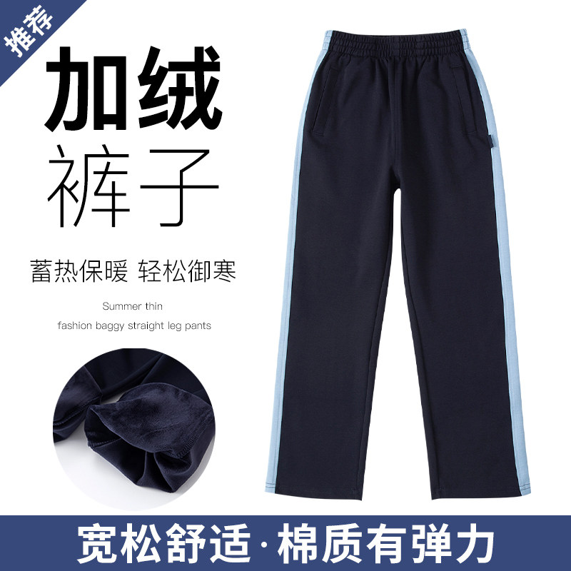 子 男女休闲灰色藏青校服裤 中小学生校服冬季 加绒保暖儿童运动裤