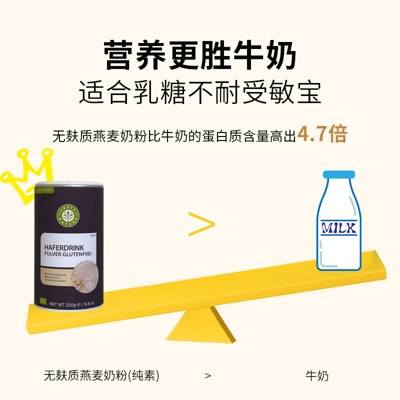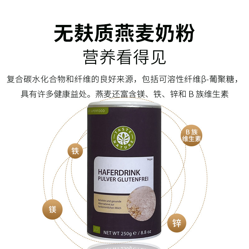 Taste Nature德国无麸质燕麦奶粉0乳糖敏宝桥本纯素植物奶250g