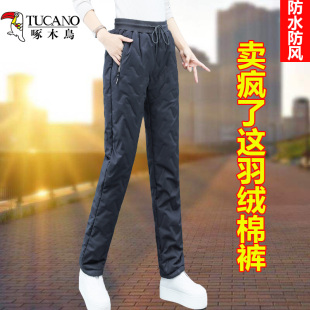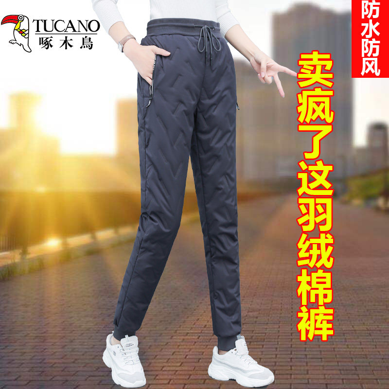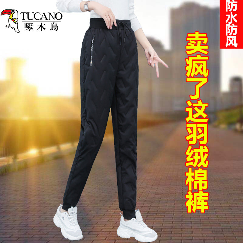 女士运动裤 啄木鸟正品 直筒加厚羊羔绒棉裤 子女秋冬2024新款 加绒裤