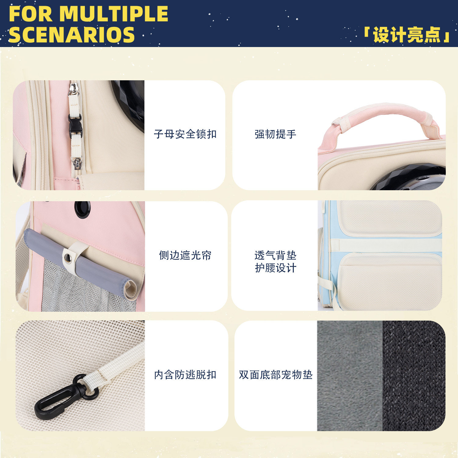 FCT美国品牌太空舱猫包防应激双肩便携外出大容量粉蓝色宠物狗包