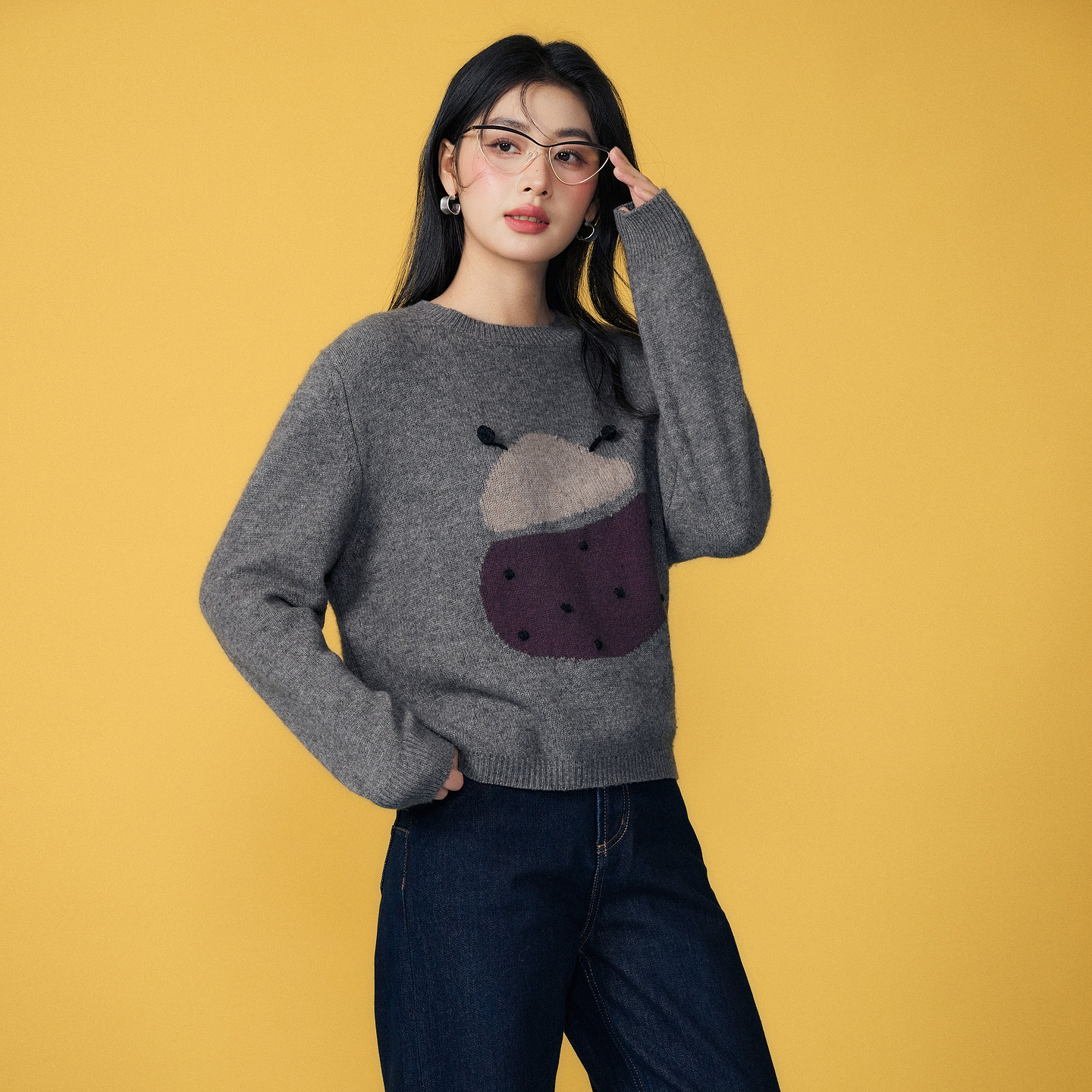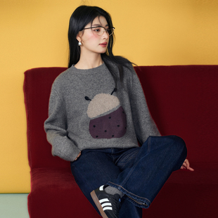 节日氛围感宽松休闲上衣 新款 巴卜Studio 红色毛衣不含毛领冬季