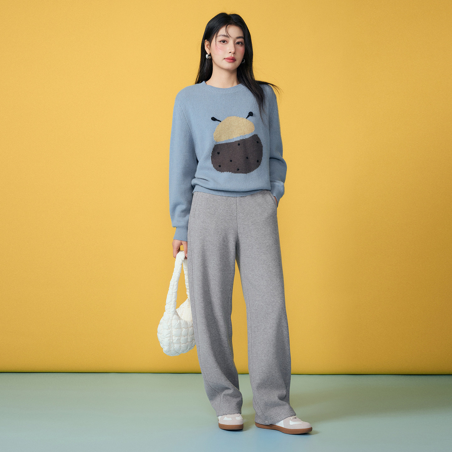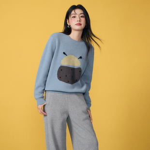 高级感上衣宽松打底针织衫 圆领100%纯山羊绒衫 女高端毛衣秋冬新款