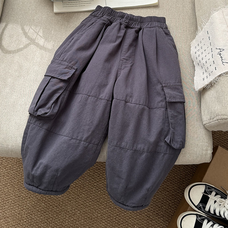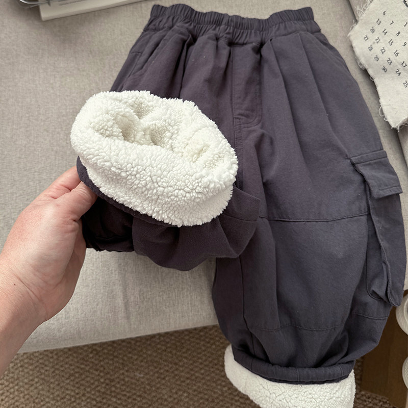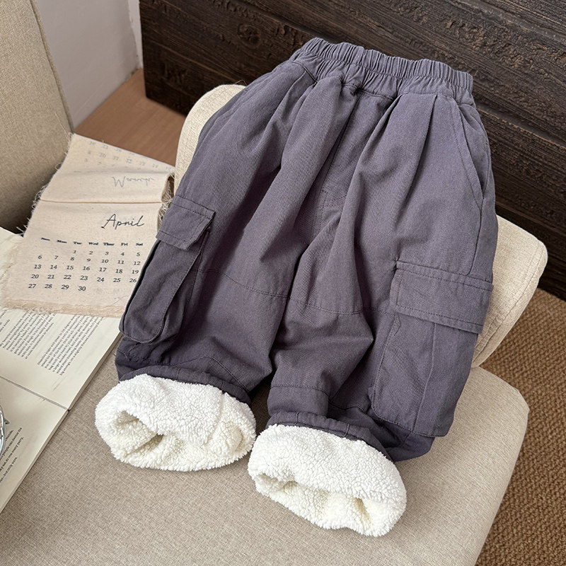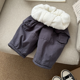 儿童加绒加厚工装 子2025新款 裤 男孩长裤 男童冬季 宝宝冬装 羊羔绒裤