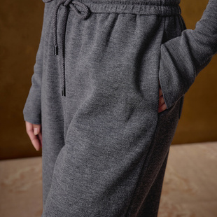 休闲阔腿裤 宽松bf慵懒风系绳卫裤 女秋冬新款 VGRASS灰色糯米羊毛裤