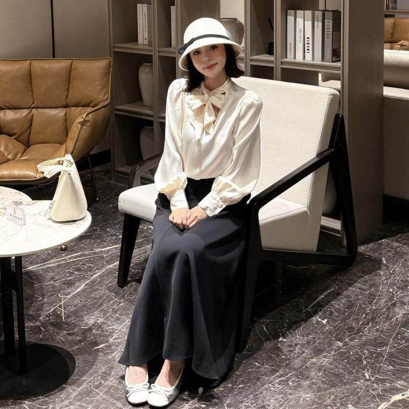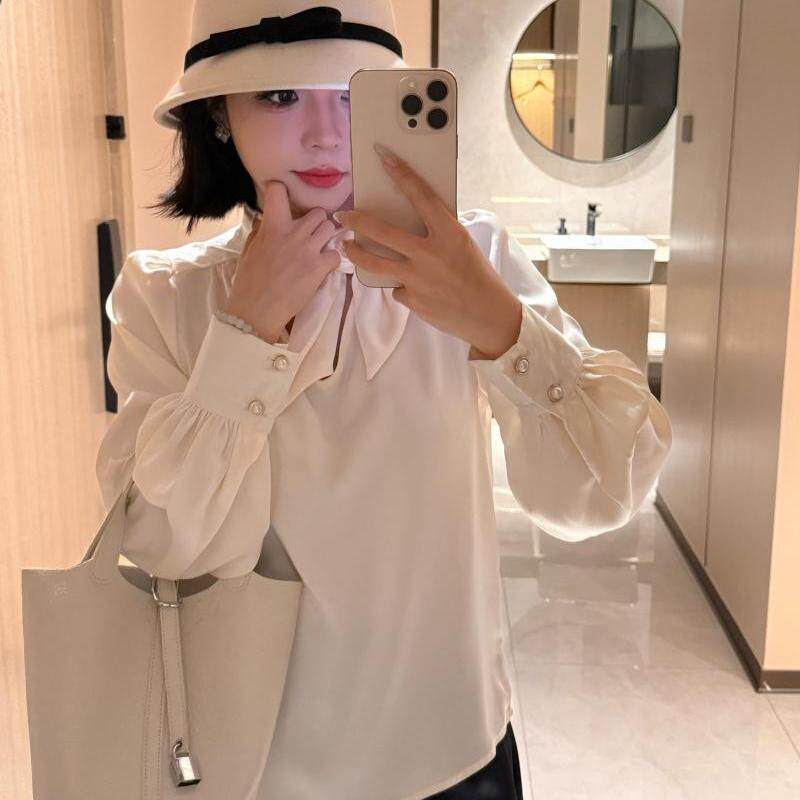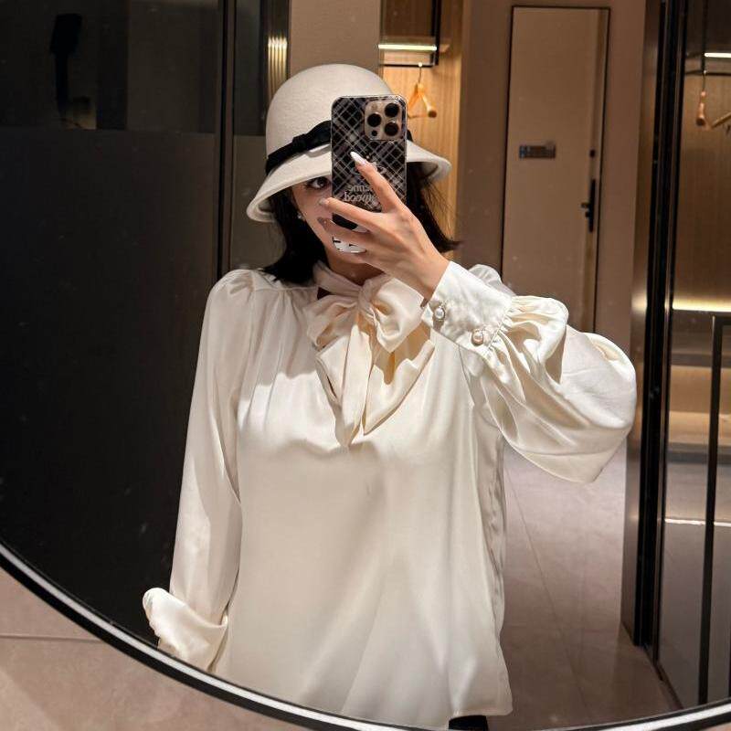 折 灯笼袖 Chestnut 系带缎面法式 衬衫 仿醋酸麻3.0
