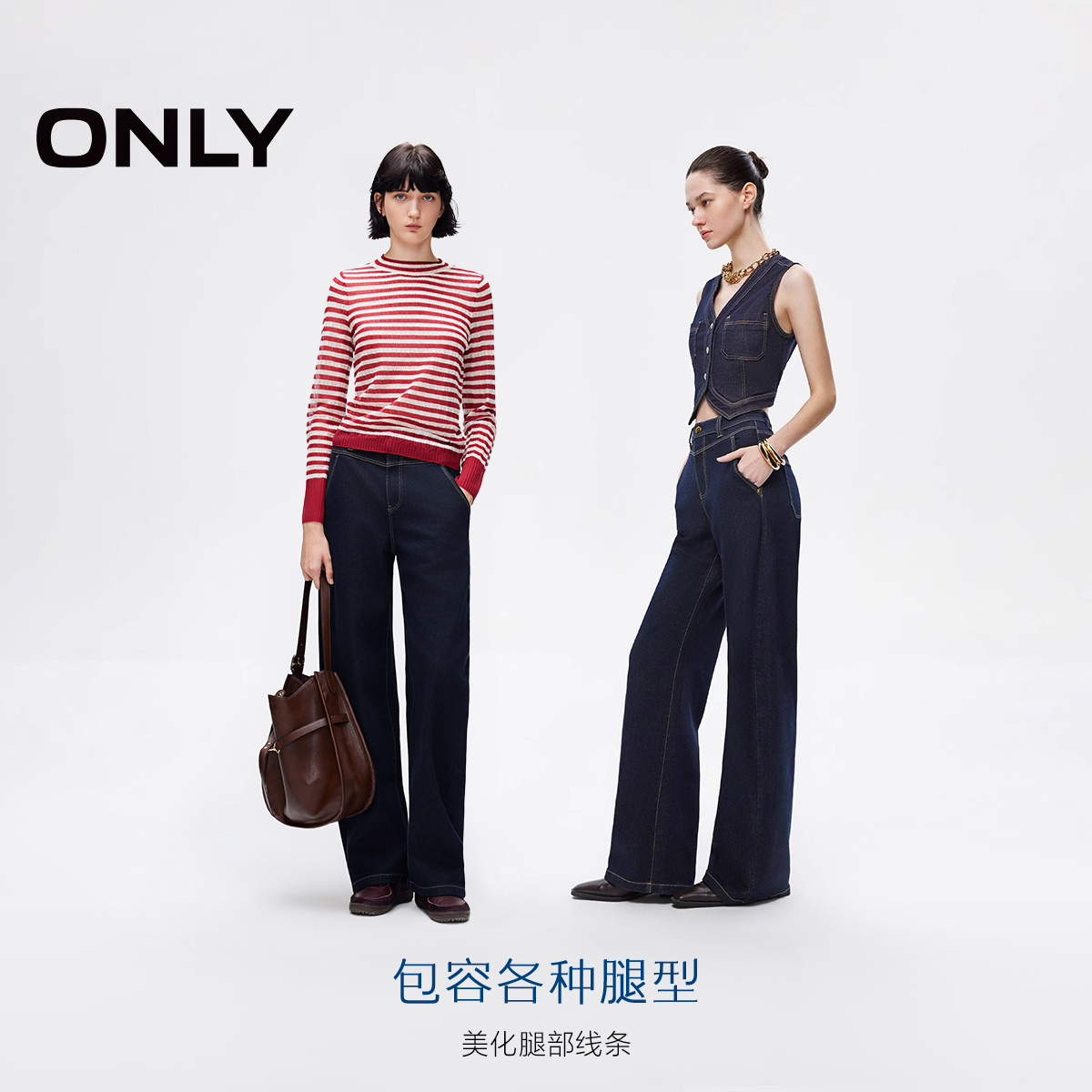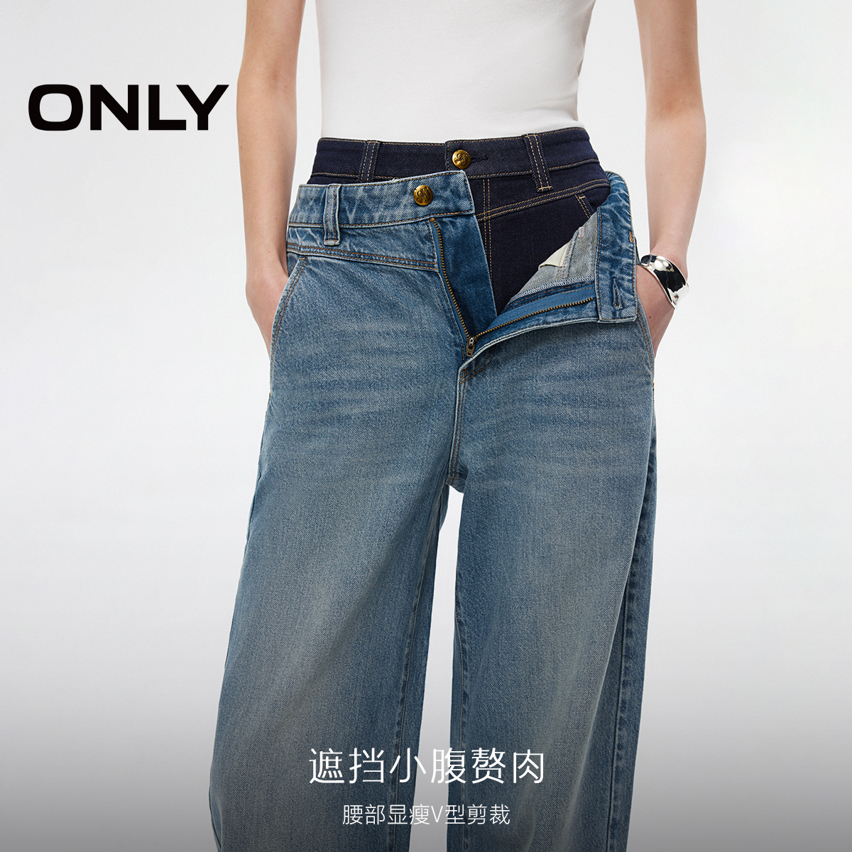 新款 香蕉裤 弯刀裤 牛仔裤 ONLY2025冬季 小个子阔腿裤 女 热销爆款