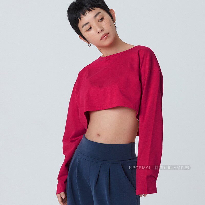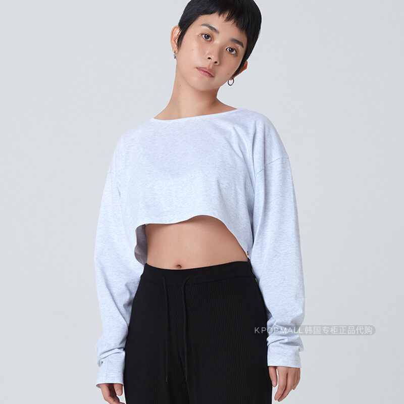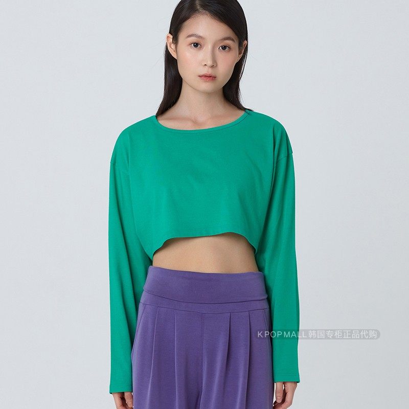 top宽型长袖 韩国正品 MUDRA女士瑜伽服crop BUDHI 露脐上衣t恤 代购