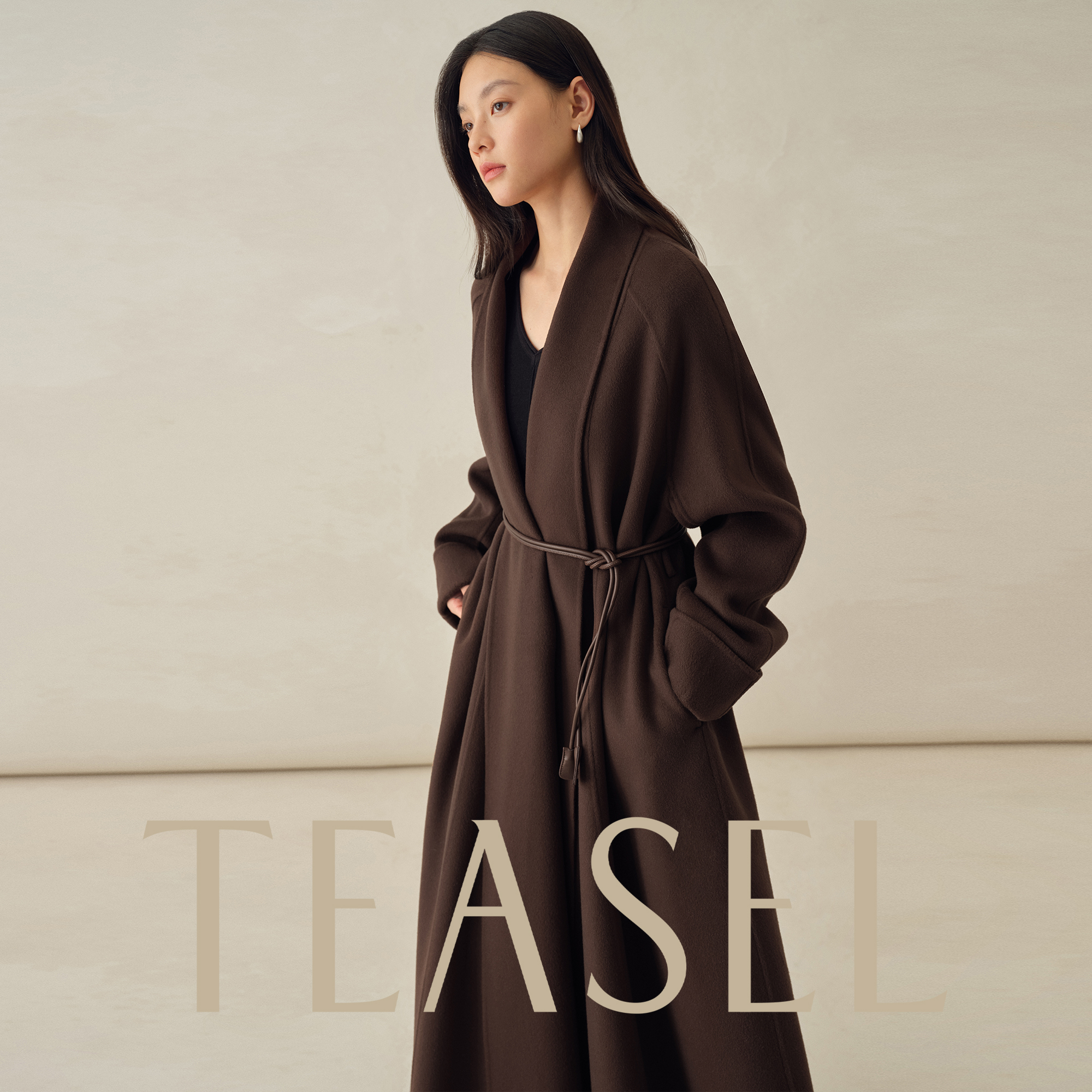 TEASEL「阿拉善 雪」14.5微米过膝大裙摆高级感浴袍纯羊绒大衣