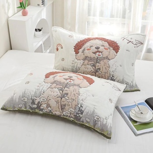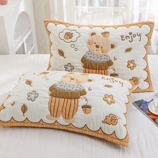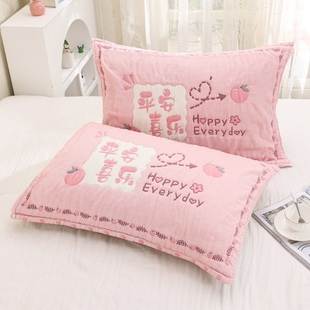 新款 加大加厚全棉纱布高档枕头巾柔软吸汗 云朵泡芙纯棉枕巾一对装